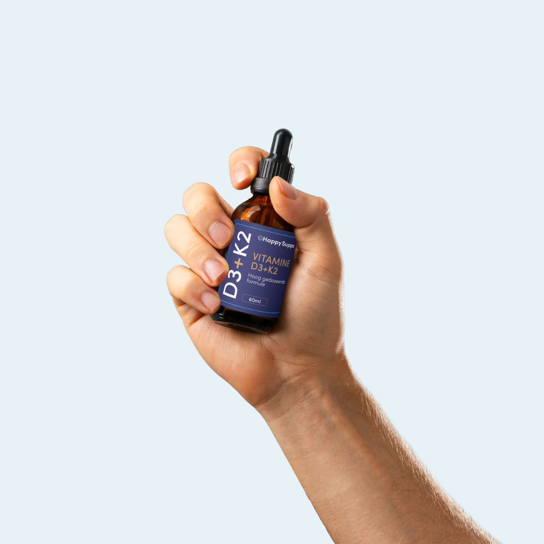 We hebben Happy Vitamine D3 & K2 met MCT-olie zorgvuldig samengesteld met een perfecte mix van essentiële vitaminen en middellange-keten vetzuren (MCT’s) voor maximale opname en effectiviteit.
